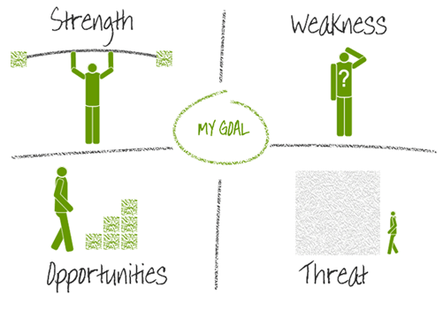 I looked at SWOT templates and I put up my own analysis, answering for helping questions.